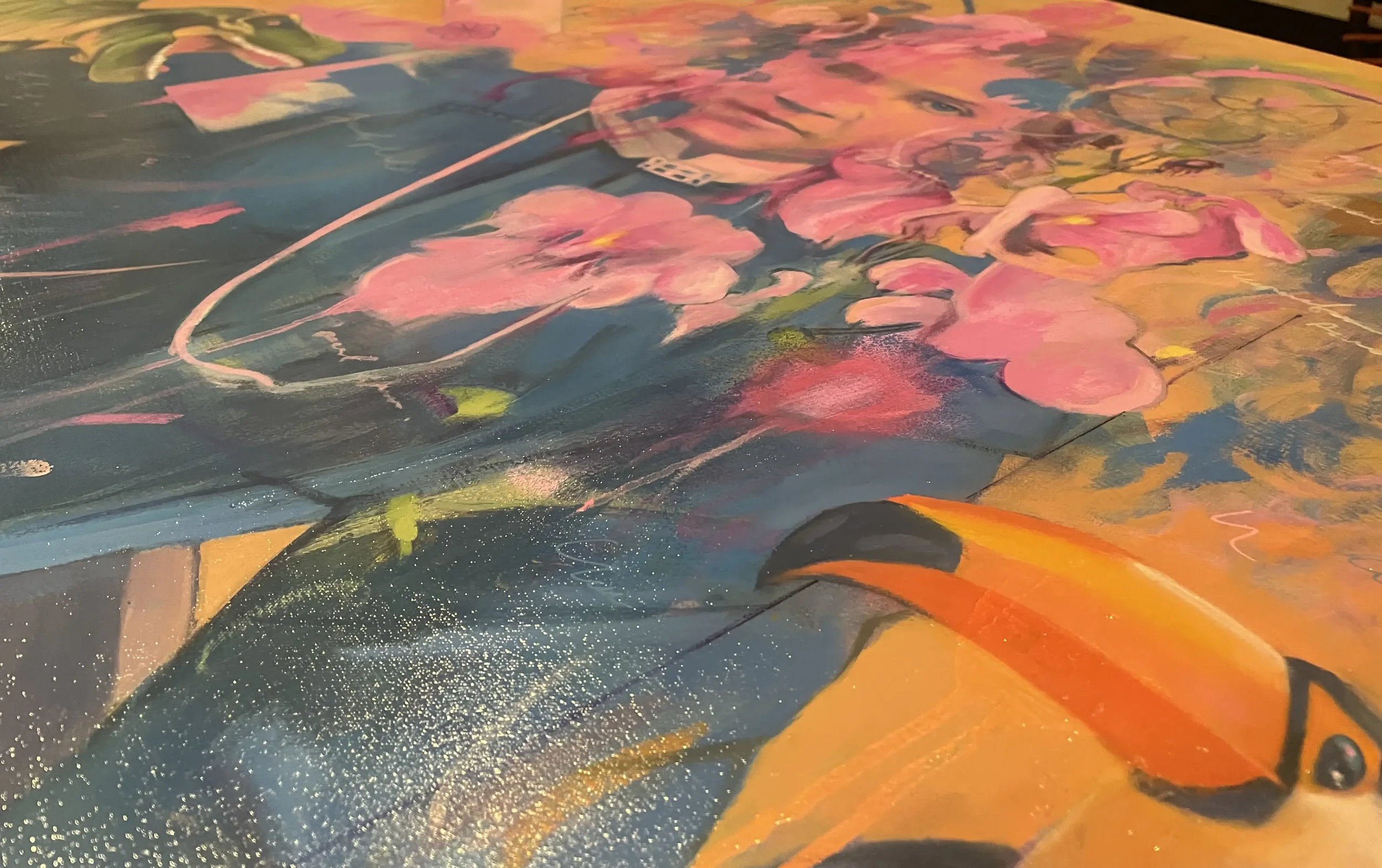 With recurring themes of impermanence, the mesmeric and the theatrical, I’m developing specific, distinct colour palettes and subject matter that I can move forward with in the next tranche of work this year. The more I do, the more things change, the greater the sense of urgency. I have big plans to move the work into larger scale canvases which are more mise-en-scene in nature.